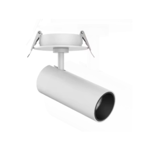 Edison LED Recessed Track light round made of die-cast aluminium white finish, DALI dimmable driver, System Power 25W, Dimension D65mmxH130mm , 3000K with a System Luminous Flux of 2150lm, High colour rendering at an index of CRI90, Lifespan 50000h with 5years warranty.